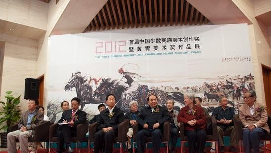 作为全国培养民族美术人才的最高学府,中央民族大学发挥少数民族美术学科实践教学和科研基地的优势,设立了中国少数民族艺术创作中心。黄胄是新中国以表现少数民族新生活、新风情的著名画家,他长期深入新疆、云南等少数民族地区,留下了不少优秀作品,1990年成立的黄胄美术基金会,“对反映时代、反映现实生活的现实主义民族绘画予以支持和鼓励,是基金会章程规定的主要宗旨之一。为此,中国少数民族艺术创作中心与黄胄美术基金会联合举办“中国少数民族美术创作奖”和“中国少数民族美术学术奖”,旨在通过该活动全面记录各民族美术家创作现状,为全国少数民族题材美术创作领域的美术家提供交流平台,为少数民族题材美术创作提供高端展示平台。