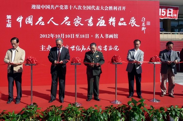 2012年10月10日至18日,北京世纪名人国际书画院主办的以“迎接十八大”为主题的第七届中国名人名家书画精品展,在首都体育馆一层的名人书画馆与观众见面。该展开幕当天,中共中央统战部原副部长楼志豪,司法部党组成员、纪检组长韩亨林,全国政协原副秘书长、北京世纪名人国际书画院院长张道诚,中国书协顾问李铎、张飙,解放军书法创作院副院长、北京世纪名人国际书画院副院长康成元中将,王铁成、苗培红、朱守道、赵立凡、张铜彦、贾起家、丁谦、张坤山、颜振卿、米南阳等当代书画名人名家,以及首都各界知名人士和书画爱好者300余人参加开幕式并参观展览。开幕式由全国青联委员、北京世纪名人国际书画院副院长兼秘书长汪碧刚主持。